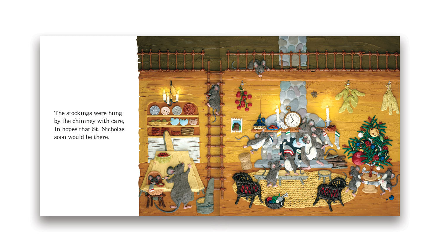 The Night Before Christmas for children and mice, both naughty and nice. Beloved by children of all ages, this traditional Christmas poem springs to life with Barbara Reid’s stunning art illustrations. Children will delight in discovering the small treasures embedded throughout the images.